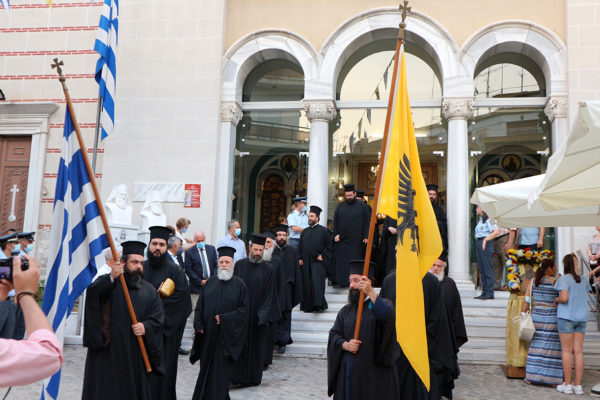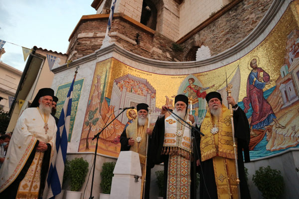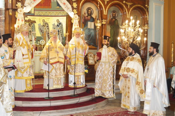 Στις ιερές Ακολουθίες, οι οποίες τελέσθηκαν λιτά και απλά, σύμφωνα με τις σχετικές υποδείξεις της Ιεράς Συνόδου της Εκκλησίας της Ελλάδος αλλά και σύμφωνα με το ήθος και την παράδοση της Ορθοδόξου Εκκλησίας, και με ιδιαίτερη μέριμνα για την αποφυγή πολυώρου συγχρωτισμού των πιστών, μετείχαν μαζί με τον επιχώριο Μητροπολίτη οι Σεβασμιώτατοι Μητροπολίτες Καλαβρύτων και Αιγιαλείας κ. Ιερώνυμος και Λήμνου και Αγίου Ευστρατίου κ. Ιερόθεος.