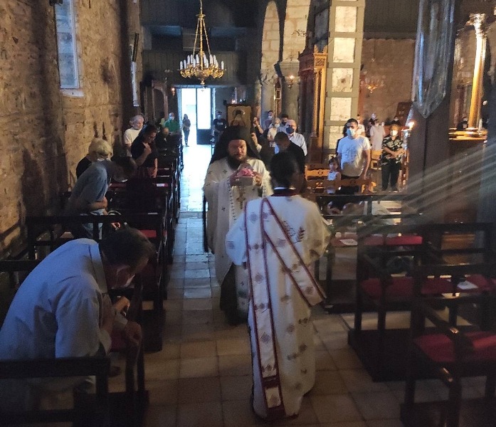 Κατά την διάρκεια της Αγρυπνίας, πιστοί, τηρώντας τα ισχύοντα υγειονομικά πρωτόκολλα, προσήλθαν να προσκυνήσουν το απότμημα του Ιερού Λειψάνου του Αγίου, το οποίο φυλάσσεται μόνιμα στο Ι. Επισκοπικό Παρεκκλήσιο και να συμμετάσχουν στις ιερές Ακολουθίες.