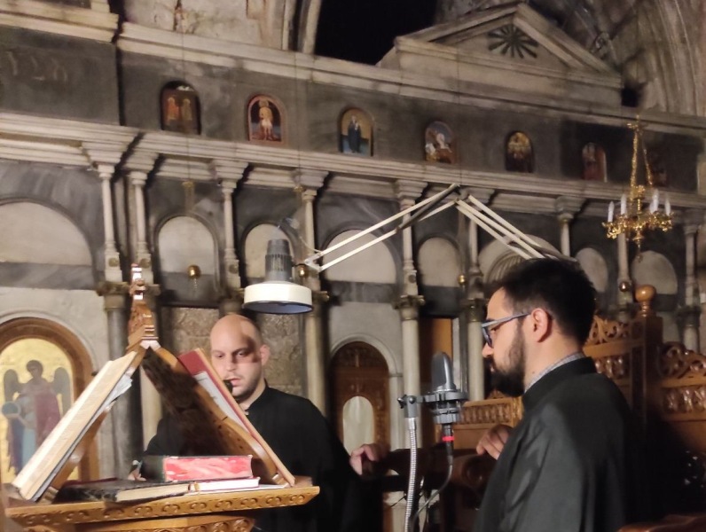 Την ιερά Υμνωδία απέδωσαν με κατανυκτικό ύφος οι Αναγνώστες της Ιεράς Μητροπόλεως κ. Ελευθέριος Πνευματικός-Πρωτοψάλτης της Ενορίας Αγ. Χριστοφόρου Βαθέος και κ. Σταύρος Καλαφάτης-Λαμπαδάριος της Ενορίας Αγ. Νεκταρίου Χαλκίδος. Όλη η Ιερά αγρυπνία μεταδόθηκε απευθείας από τον Ραδιοφωνικό Σταθμό της Ι. Μ. Χαλκίδος στους 97,7 μεγακύκλους των fm.