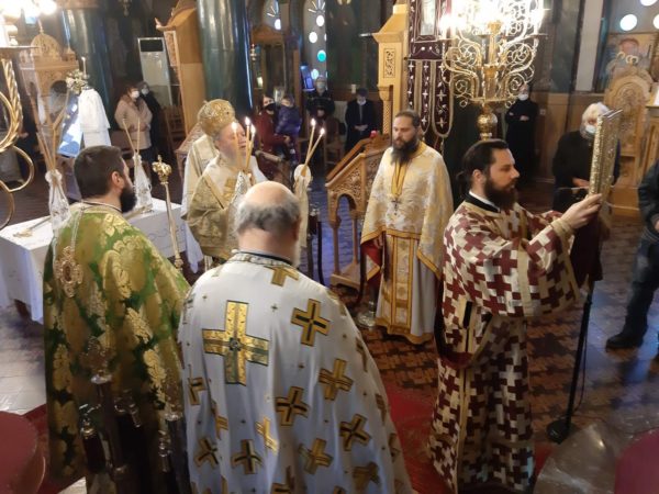 Στην ιερά πανήγυρη προεξήρχε ο Σεβασμιώτατος Ποιμενάρχης της Χαλκίδος κ. Χρυσόστομος, συλλειτουργούντων των Αρχιμ. Θεοφυλάκτου Τσαγκάρη-προϊσταμένου του Ι. Ν. Ευαγγελισμού της Θεοτόκου Χαλκίδος και Χριστοφόρου Παπαθανασίου-Εφημερίου της ιστορικής Ι. Μονής Αγίου Γεωργίου ΑΡΜΑ Φύλλων, του Σακελ. Αναστασίου Αναστασίου – Εφημερίου της Ενορίας Φύλλων και του Διακ. Νικολάου Πριμηκυρίου.
