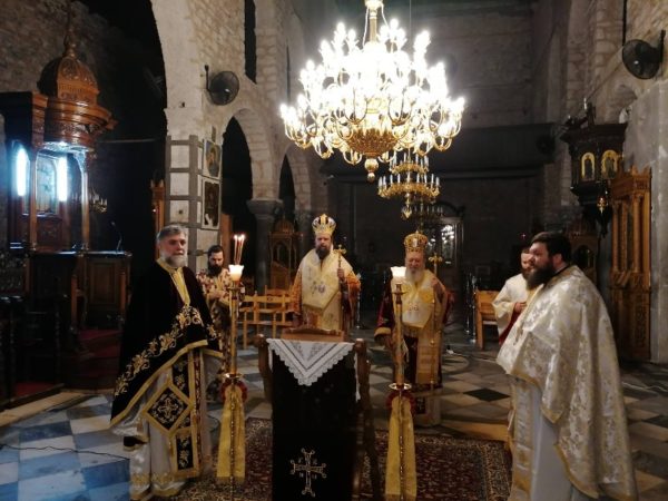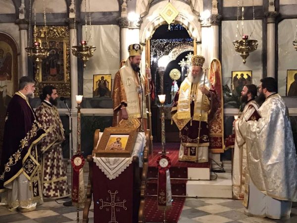 Έπειτα, ο Θεοφιλέστατος αντευχαρίστησε τον Σεβασμιώτατο και γέροντά του για την παραχώρηση της προεδρίας της Θείας Ευχαριστίας κατά την ιερά αγρυπνία και την αγαπητική παρουσία του στη ζωή του.