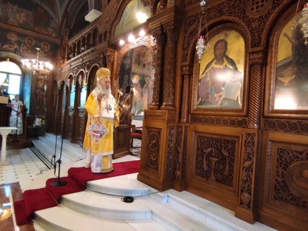 O Σεβασμιώτατος κ. Χρυσόστομος στο κήρυγμά του αναφέρθηκε στις αρετές της επιείκειας προς τους αδελφούς και της εσωτερικής ειρήνης και ηρεμίας, που χαρακτήριζαν τον Άγιο Τιμόθεο, ο οποίος ακολουθούσε το παράδειγμα επιείκειας του ίδιου του Ιησού Χριστού, όπως αναγνώσθηκε και στη σημερινή ενδιάτακτη ευαγγελική περικοπή (Λκ 9, 51-57), δηλαδή ήταν επιεικής με τους ασεβώς φερομένους στους μαθητές και Αποστόλους Του, αλλά, όπου χρειαζόταν ήταν και πολύ αυστηρός.