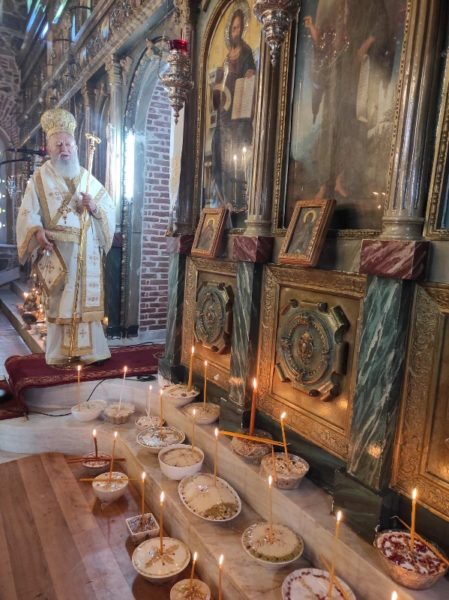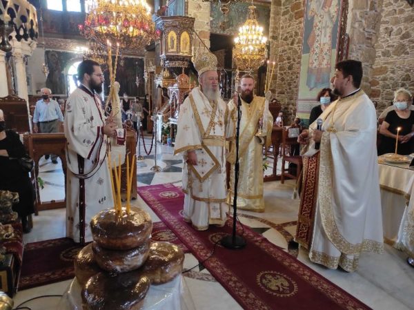 Το Σάββατο των Ψυχών 19 Ιουνίου 2021 το πρωί, ο Σεβασμιώτατος, συνοδευόμενος από τους Διακ. Νικόλαο Πριμηκύριο και Ευγένιο Τσάλλα, μετέβη στον Ενοριακό Ι. Ναό Κοιμήσεως της Θεοτόκου της γενετείρας του Βασιλικού Χαλκίδος. Εκεί, προσέφερε την Θεία Λειτουργία, συλλειτουργούντος, και του Εφημερίου της Ενορίας Πρωτοπρεσβ. Σταματίου Μπασδέκη, ενώ τέλεσε και τα μνημόσυνα των απ’ αιώνος κεκοιμημένων αδελφών μας.