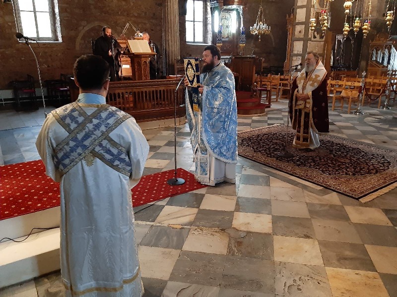 Ο Σεβασμιώτατος Μητροπολίτης Χαλκίδος κ. Χρυσόστομος λειτούργησε χθες 3 Ιανουαρίου 2021, Κυριακή προ των Φώτων, στον Ιερό Ναό της Πολιούχου Χαλκίδος, κεκλεισμένων των θυρών, με συλλειτουργό τον προϊστάμενο του Ι. Ναού Αρχιμ. Συμεών Ηλιοδρομίτη και ωμίλησε επί του ιερού ευαγγελικού αναγνώσματος (Μάρκ. 1, 1-8).