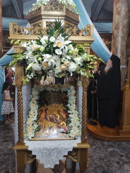 Συγκεκριμένα, την Πέμπτη 5 Αυγούστου 2021 το απόγευμα, τρίτη μέρα της πυρκαγιάς, ο Σεβασμιώτατος μετέβη στην πανηγυρίζουσα Ενορία Ωρεών. Χοροστάτησε στον Εσπερινό, κήρυξε τον θείο λόγο και ανήγγειλε τον νέο Εφημέριο της Ενορίας, Οικον. Ιωάννη Σούρα, εις διαδοχήν του προσφάτως εκδημήσαντος Ιερέως Κωνσταντίνου Χρήστου.