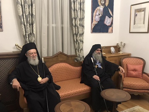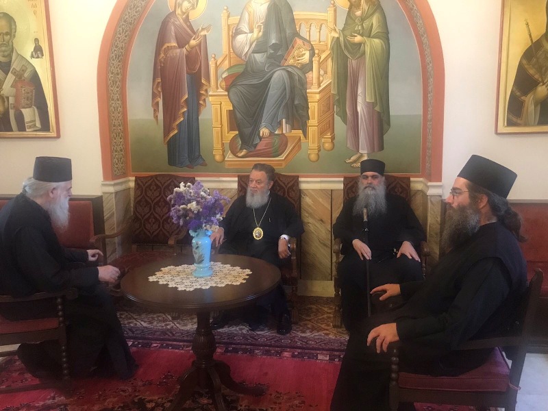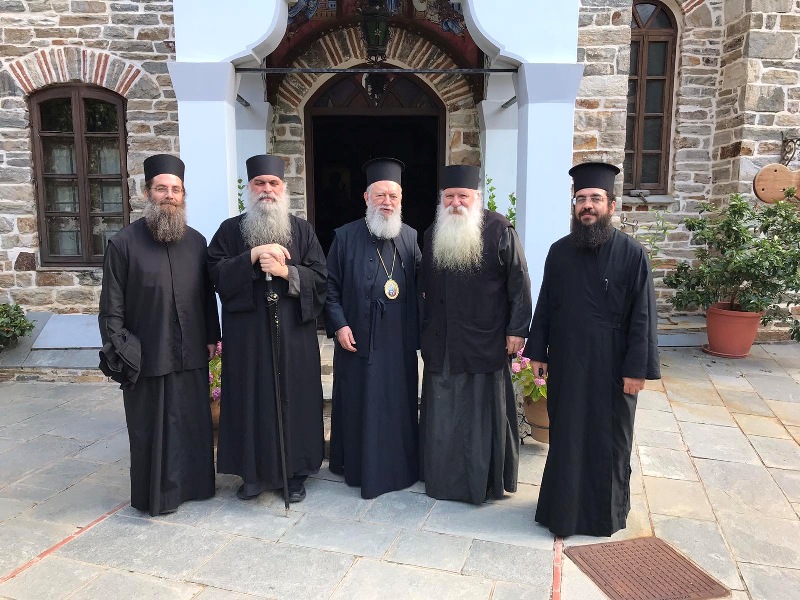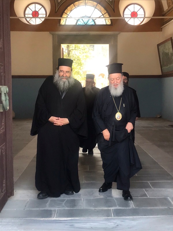 Ο Σεβασμιώτατος έτυχε θερμής υποδοχής από τον Πρωτεπιστάτη Γέροντα Γεώργιο, το απόγευμα της Παρασκευής στην πρωτεύουσα του Αγίου Όρους, τις Καρυές, όπου και διέμεινε.
