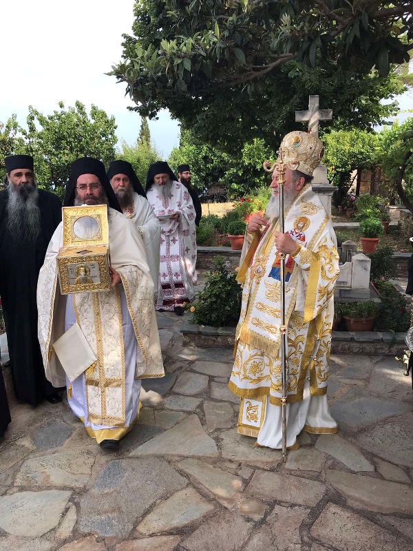 Την Παρασκευή 2 Ιουλίου 2021 ο Σεβασμιώτατος Μητροπολίτης Χαλκίδος κ. Χρυσόστομος, συνοδευόμενος από τους αυταδέλφους Αρχιμ. Αιμιλιανό και Οικον. Αναστάσιο Χρήστου, μετέβη στον Άγιον Όρος, προσκεκλημένος της Ιεράς Επιστασίας και του Πρωτεπιστάτου Γέροντος Γεωργίου Βατοπαιδινού, ώστε να προεξάρχει στην εορτή της Συνάξεως πάντων των εν Αγίω Όρει διαλαμψάντων Αγίων.