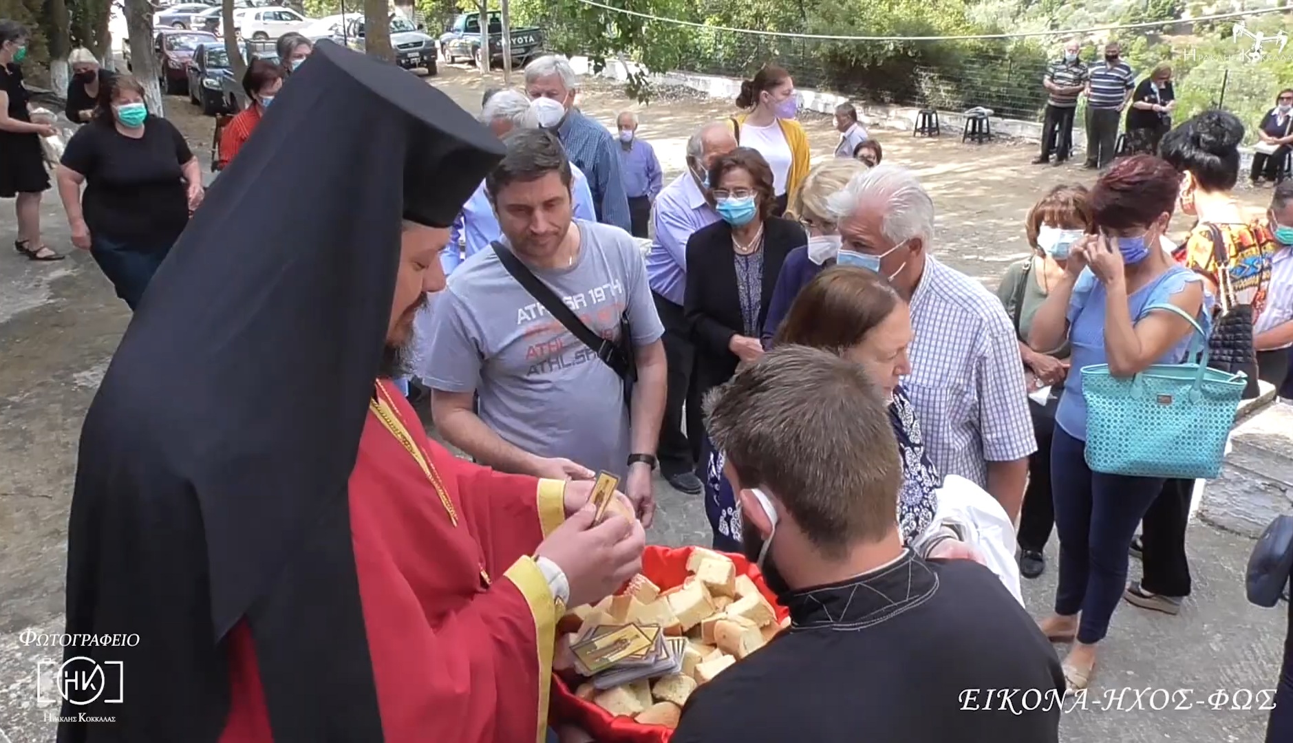 Ιερούργησε ο Πανοσ Αρχιμ Ρωμανός Μπασινάς, εφημέριος της ενορίας, με την συμμετοχή του Πρωτοψάλτη του Ιερού Ναού Αγίου Γεωργίου Αλιβερίου κ. Χαραλάμπους Μαζαράκη και του Ιεροψάλτη κ. Νικολάου Ρόγκα καθώς επίσης και των πιστών που συμμετείχαν στην Θεία Ευχαριστία τηρώντας τα υγειονομικά μέτρα.