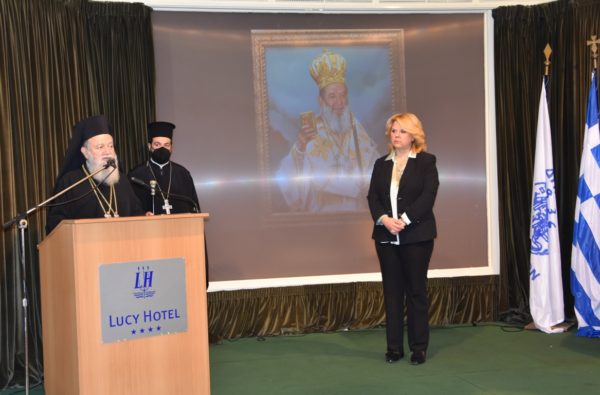 Εν συνεχεία, επέδωσε στον Σεβασμιώτατο Ποιμενάρχη το χρυσό κλειδί της Πόλεως, ύψιστη τιμητική διάκριση του Δήμου και τον κάλεσε να κλείσει με τον πάντοτε μεστό λόγο του την εκδήλωση.