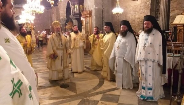 Στη συνέχεια εψάλλη η Ακολουθία του Όρθρου, ετελέσθη η Αρχιερατική χοροστασία και ακολούθησε η Αρχιερατική Θεία Λειτουργία, στην οποία οι πιστοί μετείχαν.