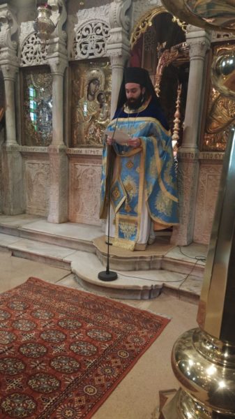 Στην Ι. Ακολουθία μαζί του συνπροσευχήθηκαν ο Πρωτοσύγκελλος της Ι. Μητροπόλεως Πανοσ. Αρχιμ. π. Νεκτάριος Δαρδανός και ο ΓΑΕ και Προϊστάμενος του Καθεδρικού Ναού Ύδρας Αιδεσ. Πρωτ. π. Ακίνδυνος Δαρδανός.
