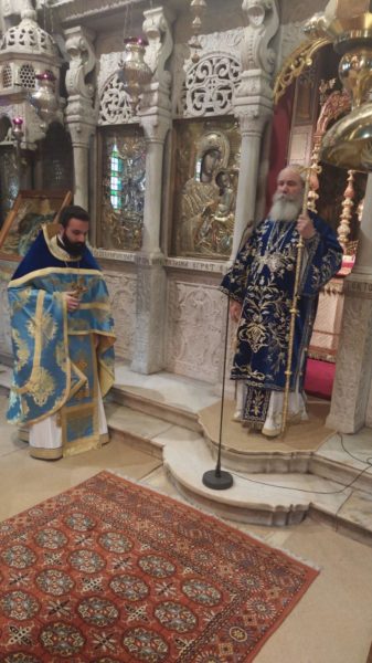 Ο Σεβασμιότατος Μητροπολίτης Ύδρας, Σπετσών και Αιγίνης κ. Εφραίμ χοροστάτησε στον Όρθρο και προεξήρχε της Αρχιερατικής Θείας Λειτουργίας και της τέλεσης του Μεγάλου Αγιασμού.
