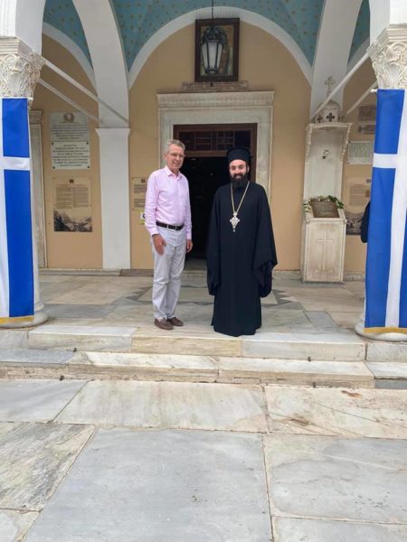 Ο Πανοσ. Πρωτοσύγκελλος ξενάγησε τον εξοχώτατο κ. Πρέσβη στον ως ανω ιστορικό Ιερό Καθεδρικό Ναό και μετέφερε τις πατρικές ευχές και ευλογίες του Σεβασμιωτάτου Μητροπολίτου Ύδρας, Σπετσών και Αιγίνης κ. ΕΦΡΑΙΜ.