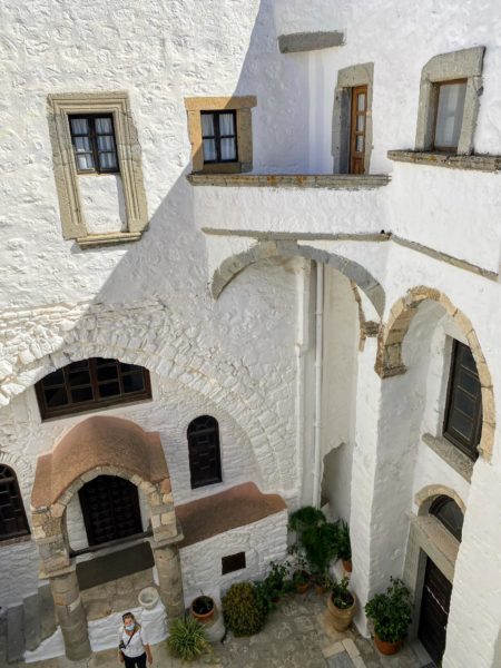 Η Ιερά Μονή του Ιωάννη του Θεολόγου, που στέκεται σαν κορώνα στην κορυφή του λόφου, στο υψηλότερο σημείο της Χώρας, θυμίζει κάστρο και είναι ορατή από οποιοδήποτε άλλο σημείο του νησιού.