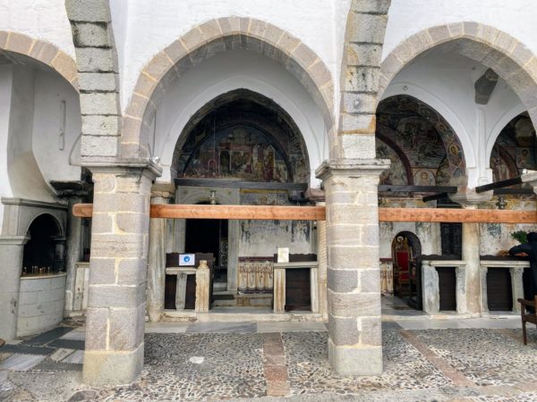 Στο εσωτερικό της υπάρχουν εικόνες αξεπέραστης ομορφιάς και αξίας. Παρεκκλήσια, κελιά, αποθήκες, στέρνες, το οστεοφυλάκιο, η Βιβλιοθήκη, το Μουσείο, η τράπεζα αλλά και οι βοηθητικοί χώροι απαρτίζουν ένα μοναστηριακό συγκρότημα απαράμιλλης ομορφιάς, εντυπωσιακής αρχιτεκτονικής και θρησκευτικής κατάνυξης.