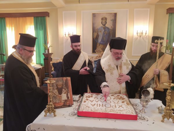 Μετά την κοπή της Βασιλόπιτας και τις καθιερωμένες ευχές ο Σεβασμιώτατος ανεκοίνωσε στο Ιερό Σώμα την πρόσφατη απόφαση της Αγίας και Ιεράς Συνόδου του Οικουμενικού Πατριαρχείου, περί της κατατάξεως στο Αγιολόγιο της Μεγάλης του Χριστού Εκκλησίας του Ιερομάρτυρος Αγίου Κυρίλλου του ΣΤ’, Πατριάρχου Κωνσταντινουπόλεως, που μαρτυρικώς απαγχονίσθηκε στις 18 Απριλίου 1821 στην Αδριανούπολη και ο τάφος του οποίου βρίσκεται στο παρέβριο χωριό του Πυθίου, κοντά στο Διδυμότειχο, και εξέφρασε την ευγνωμοσύνη της τοπικής Εκκλησίας προς την Α.Θ.Π. και την ικανοποίηση της τοπικής κοινωνίας για το γεγονός.