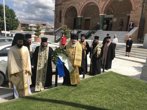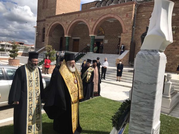 Μετά τη Θεία Λειτουργία, ο οικείος Μητροπολίτης κ. Δαμασκηνός προέστη του Μνημοσύνου και του επιταφίου Τρισαγίου του μακαριστού προκατόχου του κυρού Νικηφόρου και κατέθεσε στέφανο στόν παρακείμενο ανδριάντα του.