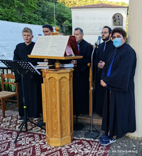 Με τις ευλογίες του Σεπτού μας Ποιμενάρχου κ.κ. Γερμανού, την παραμονή της εορτής Κυριακή 9 Μαΐου 2021, τελέσθηκε ο υπαίθριος Μέγας Αρχιερατικός Πανηγυρικός Εσπερινός, μετ’ αρτοκλασιών, χοροστατούντος του Θεοφ. Επισκόπου Ωλένης κ.κ. Αθανασίου, ο οποίος κήρυξε και τον θείον λόγον, πλαισιούμενος από τον Ιεροκήρυκα της Ιεράς Μητροπόλεώς Ηλείας και Ωλένης π. Χριστοφόρο Κωλλέτη και άλλους Ιερείς. Την κυριώνυμο ημέρα της εορτής Δευτέρα 10 Μαΐου, τελέσθηκε η ακολουθία του Όρθρου και η υπαίθρια πανηγυρική Αρχιερατική Θεία Λειτουργία, μετά θείου κηρύγματος υπό του Θεοφ. Επισκόπου Ωλένης κ.κ. Αθανασίου. Παρέστη δε ο εντιμότατος Δήμαρχος Δυτικής Αχαΐας κ. Σπύρος Μυλωνάς, Αντιδήμαρχοι της περιοχής και ο Πρόεδρος του Τ.Δ. Σπάτα κ. Ανδρέας Γεωργόπουλος. Στο πλαίσιο των προληπτικών υγειονομικών μέτρων κατά του κορονοϊού, δεν έγινε η καθιερωμένη λιτανεία της θαυματουργής και περίπυστης Εικόνας του Αγίου Νικολάου. Τους Αναστάσιμους αλλά και εορτίους Εκκλησιαστικούς Ύμνους, κατά την διάρκεια των Ιερών αυτών ακολουθιών απέδωσε θαυμάσια, χορωδία Ιεροψαλτών της περιοχής Βουπρασίας, υπό την διεύθυνση του Πρωτοψάλτου κ. Δημητρίου Θανόπουλου, Καθηγητού της Σχολής Βυζαντινής Μουσικής της Ιεράς Μητροπόλεώς μας.
