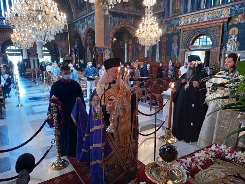 Ο σεπτός Ποιμενάρχης ενώπιον του Επιταφίου του Κυρίου μας ανέπεμψε ευχές και παρακλήσεις προς Αυτόν, υπέρ της Πατρίδος μας, του λαού της Ι. Μητροπόλεως και ολόκληρου του κόσμου, παρακαλώντας Τον να χαρίσει την υγεία στους νοσούντες, δύναμη στους ιατρούς και τους νοσηλευτές και να μας λυτρώσει απ’ την φοβερή πανδημία, ώστε μαζί με την Ένδοξο Ανάστασή Του να αναστήσει και όλους εμάς από την αμαρτία και να μας οδηγήσει προς την Αιώνιο Ζωή! Ο Ποιμενάρχης κατέληξε ευχόμενος το Ποίμνιό του να συνεχίσει να προσέρχεται στις Ι. Ακολουθίες τηρώντας τα μέτρα και φυσικά να μην αξιωθούμε στην ζωή μας να ξαναζήσουμε αντίστοιχο Πάσχα!