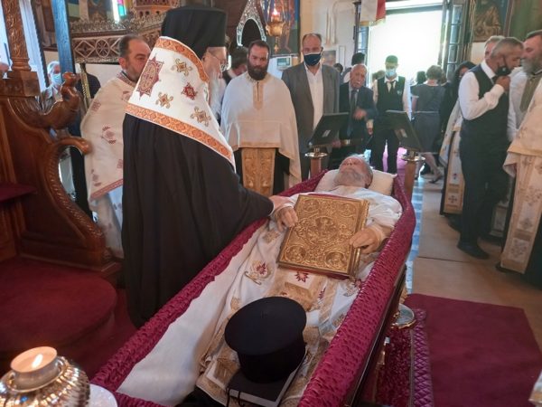 Η εξόδιος Ακολουθία εψάλη σήμερα Τρίτη, 1η Ιουνίου 2021, στον Ι. Ναό που υπηρετούσε, υπό του Σεβασμιωτάτου Μητροπολίτου Κορίνθου κ. Διονυσίου, τη συμμετοχή πλέον των δέκα (10) Ιερέων, του Αντιπεριφερειάρχου Κορινθίας κ. Α. Γκιολή και όλων των κατοίκων του χωριού, που τον προέπεμψαν έως την τελευταία του κατοικία με αγάπη, τιμή και σεβασμό.