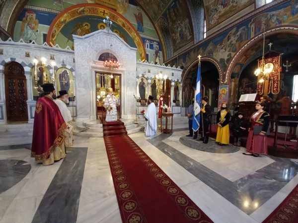 Ακολούθως, μετέβησαν άπαντες στο Μαυσωλείο, στον προαύλιο χώρο του Καθεδρικού Ι. Ναού, όπου πραγματοποιήθηκε η καθιερωμένη κατάθεση στεφάνων.
