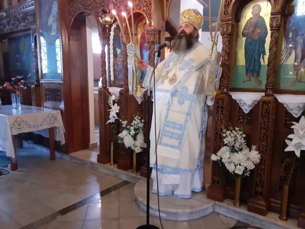 Στη συνέχεια αναφερόμενος στην Εορτή Πάντων των Αγίων ο Σεβασμιώτατος τόνισε ότι, αφού εορτάσαμε την Ανάσταση, την Ανάληψη και την Πεντηκοστή, που είναι η γενέθλιος ημέρα της Εκκλησίας μας, η Εκκλησία προβάλει όλους τους Αγίους, που ευαρέστησαν στον Θεό, για να μας υπενθυμίσει ότι κι εμείς οφείλουμε να γίνουμε άγιοι, καθώς έχουμε την επαγγελία του Χριστού δια στόματος του Πέτρου «ἅγιοι γίνεσθε, ὅτι ἐγὼ ἅγιός εἰμι» (Α΄, α΄,16), οφείλουμε να γίνουμε άγιοι, γιατί είμαστε πλασμένοι κατ’ εικόνα και καθ’ ομοίωση Εκείνου, οφείλουμε να γίνουμε άγιοι, γιατί αγίους μας προσφωνεί και ο Απόστολος Παύλος στις Επιστολές του. «Η Εκκλησία είναι ένα εργαστήρι αγιότητας, που παράγει Αγίους κάθε ηλικίας, φύλου, εθνικότητας και κάθε επαγγέλματος και ιδιότητας, ώστε ο κάθε ένας από εμάς να έχει ένα πρότυπο σύμφωνα με το οποίο θα πορεύεται στην ζωή του. Επιβάλλεται να προσπαθούμε καθημερινά με προσευχή, ταπείνωση και μετάνοια να αποκτήσουμε τις αρετές, που μας δίδει το Άγιο Πνεύμα και μας μεταβάλλουν από ανθρώπους του θανάτου σε ανθρώπους του Θεού. Η Εκκλησία μας εορτάζει μεταφέροντας μας την ανάγκη να γίνουμε και εμείς άγιοι και να τιμούμε τον Απόστολο μας, ο Οποίος καθημερινά μας υπενθυμίζει ότι στόχος μας είναι να γίνουμε άγιοι. Οι δε έκτροπες καταστάσεις, όπως π.χ. η πρόσφατη επίθεση με καυστικό υγρό από κληρικό σε Επισκόπους, ίσως κάνει μερικούς να αναρωτηθούν: πού υπάρχει η αγιότητα; Ας μην ξεχνούν όμως αυτοί ότι ο Χριστός ξεκαθάρισε: «οὐ γὰρ ἦλθον καλέσαι δικαίους, ἀλλὰ ἁμαρτωλοὺς εἰς μετάνοιαν» (Ματ. θ΄, 13) και εμείς οφείλουμε, παρά την αμαρτωλότητά μας, να παρακαλούμε τον Απόστολο μας να σκεπάζει την Ελλάδα μας και όλον τον κόσμο, να μας φωτίζει να γνωρίσουμε τον Θεό μας, να τον αγαπούμε και να εναποθέσουμε σε Αυτόν την ελπίδα της ζωής μας!»