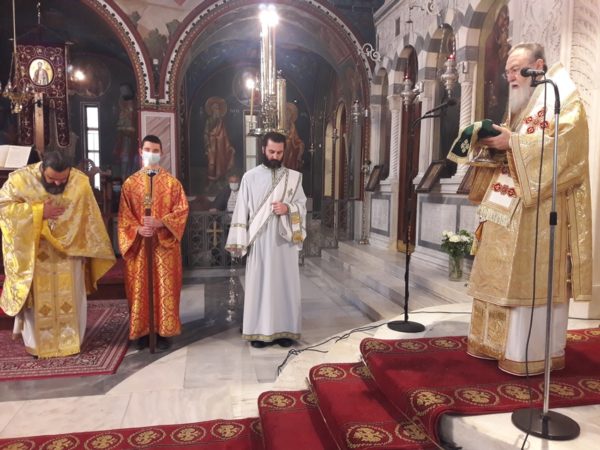 Τη Θεία Λειτουργία τέλεσε ο Σεβασμιώτατος Μητροπολίτης Κορίνθου κ. Διονύσιος χθες Κυριακή, 14 Φεβρουαρίου 2021, στον Καθεδρικό Ι. Ναό του Απ. Παύλου στην Κόρινθο, πλαισιούμενος από τους Κληρικούς του Ι. Ναού.