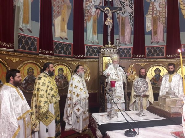 Το απόγευμα της ίδια μέρας και στον ως άνω Ι. Ναό, ο Σεβασμιώτατος τέλεσε τον Α’ Κατανυκτικό Εσπερινό, γνωστό ως Εσπερινό της «Συγγνώμης». Παρά το γεγονός ότι εφέτος, λόγω της υγειονομικής κρίσης, ο Ι. Ναός δεν κατακλύστηκε από τους Πιστούς, όπως συνέβαινε όλα τα προηγούμενα χρόνια, ώστε όλοι μαζί να λάβουν και να δώσουν την αμοιβαία συγχώρηση, προκειμένου καθαροί από παντός μολυσμού σαρκός και πνεύματος, άξια να εισέλθουν στο στάδιο των πνευματικών αγώνων της Μ. Τεσσαρακοστής ο Ποιμενάρχης διάβασε την συγχωρητική ευχή εκ του Ι. Ευχολογίου και ομίλησε ερμηνεύοντας εκ του τροπάριου του Κατανυκτικού Εσπερινού τον στίχο: «Ημάρτομέν σοι, σώσον, ως πάλαι Νινευϊτας, Χριστέ Βασιλεύ, καί κοινωνούς ημάς, ουρανίου Βασιλείας ποίησον εύσπλαγχνε». Επεξήγησε ότι, το τροπάριο αυτό μας μεταφέρει από την Παλαιά Διαθήκη και τον Προφήτη Ιωνά, στην Καινή Διαθήκη προεικονίζοντας την Σταύρωση και την τριήμερο Ανάσταση του Χριστού και καταδεικνύοντας το μεγαλείο της μετάνοιας και της συγχωρητικότητας που σώζει τον άνθρωπο με την πρόνοια του Θεού. Οι Νινευΐτες, αμαρτωλοί όντες, ακούγοντας τον Ιωνά μετανόησαν από τον Βασιλέα έως και τον τελευταίο πολίτη. Ακολούθως προσαρμόστηκαν στις εντολές του Θεού, που μέσω του Ιωνά έλαβαν και ο Θεός δέχτηκε την ειλικρινή μετάνοιά τους και τους έσωσε. Κατά αυτόν τον τρόπο κ᾿ εμείς οι Πιστοί οφείλουμε να προσελκύσουμε το έλεος του Θεού με ειλικρινή μετάνοια, ώστε ασφαλείς και ευλογημένοι να σώσουμε την ψυχή μας κατά το μέγα Έλεος Του!