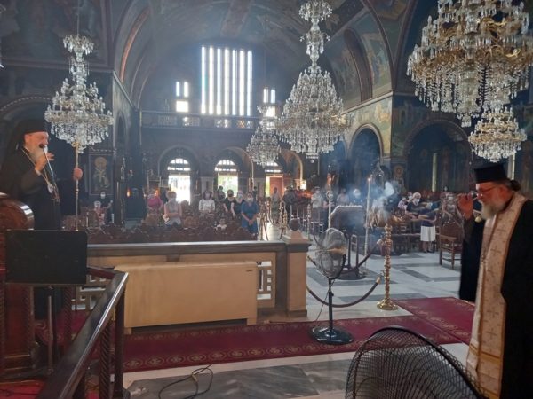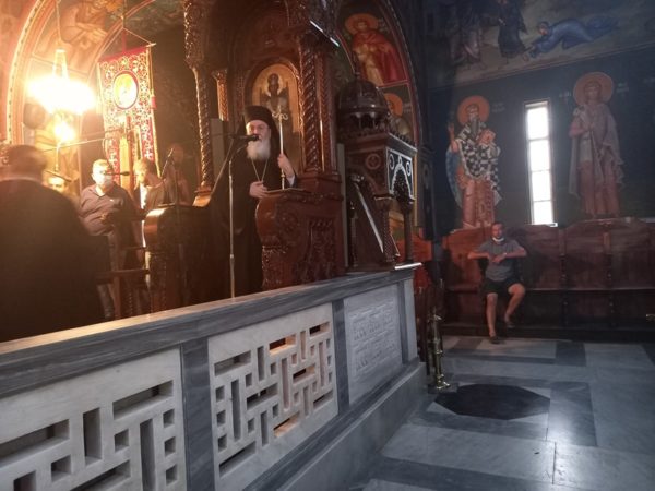 Λίγο πριν την απόλυση ο Σεβασμιώτατος μίλησε προς τους Πιστούς επισημαίνοντας, ότι “στην Εκκλησία μας, σύμφωνα με τον Απ. Παύλο, τελούμε, «πάντα εὐσχημόνως καὶ κατὰ τάξιν» (Α΄Κορ, ιδ΄, 40), καθημερινά Ιερές Ακολουθίες, για να υμνούμε και να δοξολογούμε τον Θεό, ωστόσο όμως υπάρχουν και εορτές μέσα στο έτος, που είναι αφιερωμένες στον Χριστό (Δεσποτικές Εορτές), στην Παναγία (Θεομητορικές Εορτές) και Εορτές αφιερωμένες στους Αγίους, που ακολούθησαν τα χνάρια του Κυρίου και αγωνίστηκαν κατά την προτροπή του Κυρίου «ἅγιοι γίνεσθε, ὅτι ἐγὼ ἅγιός εἰμι.» (Α’ Πετρ. Α΄,16).”