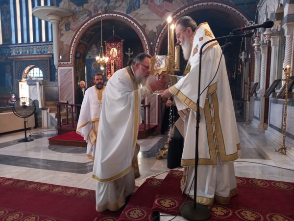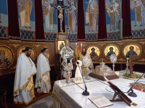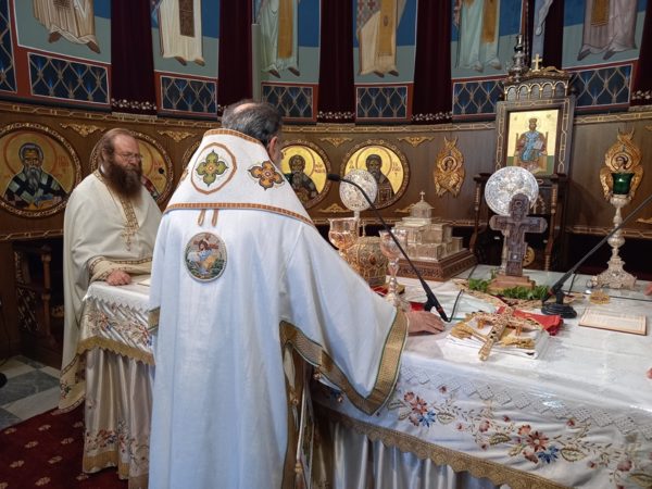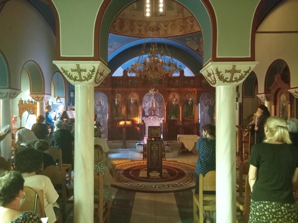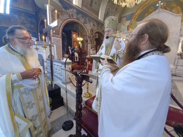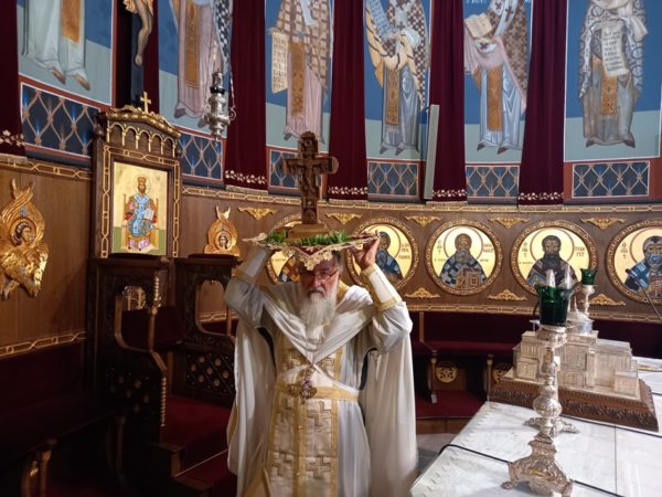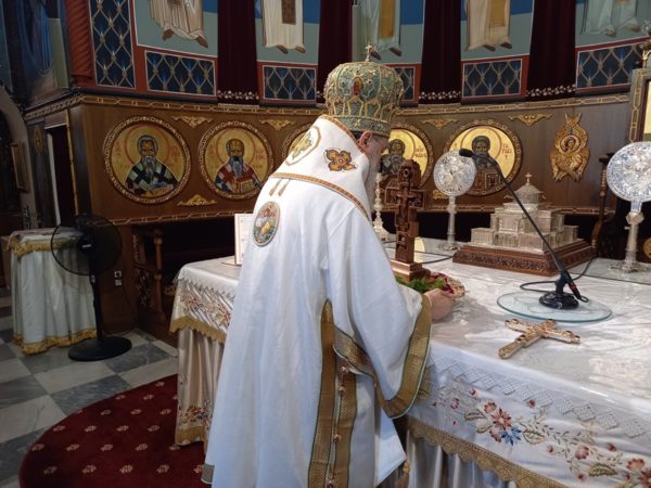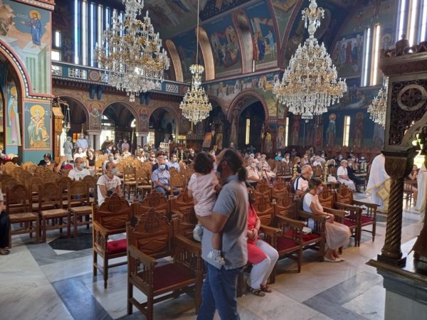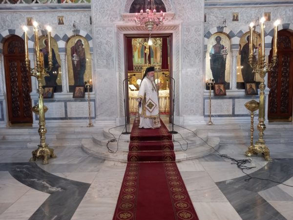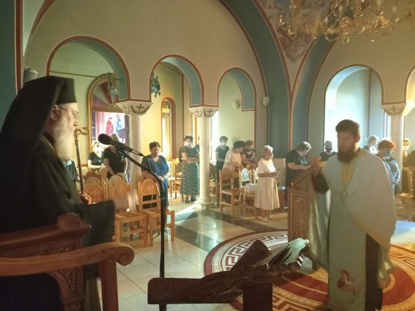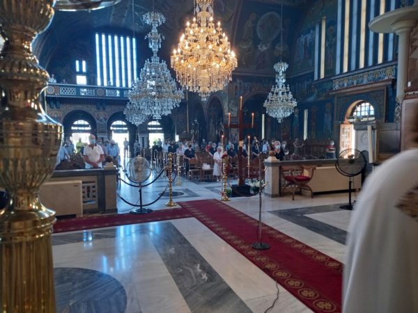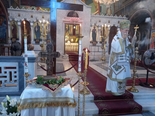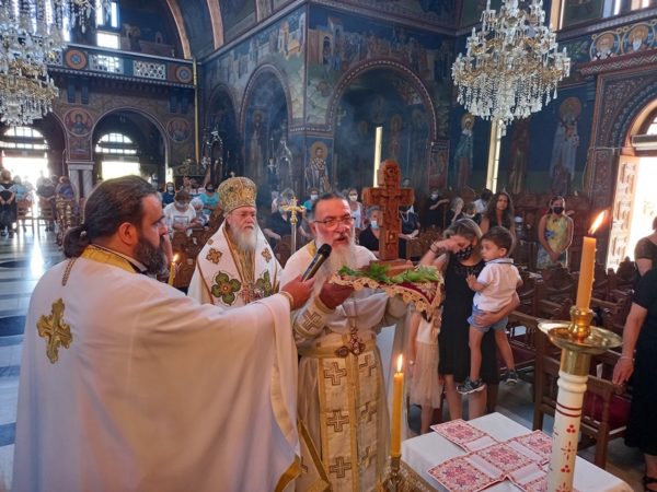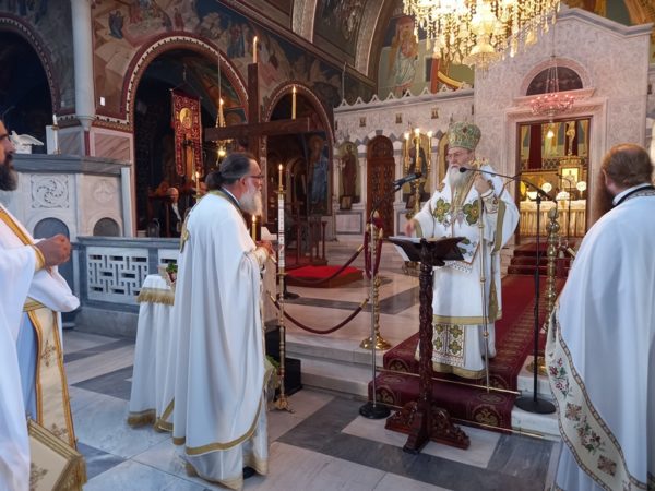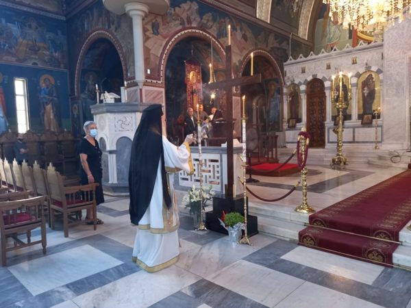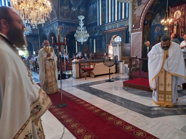 Στον λόγο του ο Σεβασμιώτατος επεξήγησε την εορτή της Προόδου του Τιμίου Σταυρού, ως την έξοδο και την λιτανεία Του από το Παλάτιο της Κωνσταντινουπόλεως στην Μεγάλη Εκκλησία την «Αγιά Σοφιά» και την προσκύνηση Του από τους Πιστούς. Και καθώς από την 1η Αυγούστου ξεκινά η νηστεία της Παναγίας μας, η οποία ήταν αυτόπτης μάρτυρας του Σταυρού και της Αναστάσεως του Υιού και Θεού Της και αξιώθηκε να μεταστεί κι Αυτή στους ουρανούς και να λάβει την θέση Της κατά το Προφητικό λόγιο: «Παρέστη ἡ Βασίλισσα ἐκ δεξιῶν σου, ἐν ἱματισμῷ διαχρύσῳ περιβεβλημένη, πεποικιλμένη» (ψαλμ. Μδ΄,10). Έτσι καλούμαστε κι εμείς να λάβουμε την δύναμη και την βοήθεια του Σταυρού, ώστε να βιώσουμε καλύτερα την σημαντική αυτή για την Ορθοδοξία μας περίοδο. Γι’ αυτό άλλωστε ψάλλουμε καθημερινά στους Ναούς μας την Παράκληση της Παναγίας μας και νηστεύουμε. Παραδοσιακά δε, οι Εκκλησίες μας σφύζουν από κόσμο τον Δεκαπενταύγουστο, καθώς γιορτάζουμε το «Πάσχα του καλοκαιριού». Η παρουσία του κορωνοϊού όμως ήρθε να ανατρέψει δυναμικά αυτή τη διαχρονική βεβαιότητα και τον εορτασμό με αποτέλεσμα ολιγότεροι πιστοί από το σύνηθες να βρίσκονται αυτές τις μέρες στους Ναούς μας. Ωστόσο, δοξάζουμε τον Θεό, που επέτρεψε την δοκιμασία αυτή, γιατί φάνηκε ποιοι αψηφώντας τον κίνδυνο προσήλθαν να ζητήσουν την βοήθεια και την δύναμη του Θεού και ποιοι, εκείνη την ίδια στιγμή, μας περιγελούσαν ότι πιστεύουμε ως ανόητοι στον Θεό και δεν καταλαβαίνουμε ότι κολλάμε την ίωση και πεθαίνουμε. Και όμως αυτοί οι ίδιοι που έλεγαν αυτά αποδείχθηκε ότι δεν ήξεραν ούτε τι ήθελαν, ούτε τι έπρεπε να κάνουν, ούτε τι τους επέτρεπαν να κάνουν τα μεγάλα οικονομικά, πολιτικά και ιατρικά συμφέροντα…