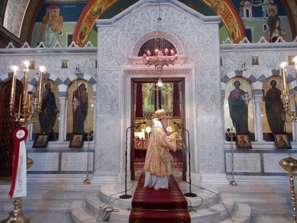 Την Θεία Λειτουργία της αποδόσεως της Εορτής του Πάσχα τέλεσε ο Σεβ. Μητροπολίτης Κορίνθου κ. Διονύσιος σήμερα Τετάρτη, 9 Ιουνίου 2021, στον Καθεδρικό Ι. Ναό του Αποστόλου Παύλου στην Κόρινθο πλαισιούμενος από τους Ιερείς του Ιερού Ναού και τον Αρχιδιάκονο της Ι. Μητροπόλεως π. Δαμασκηνό Γεννηματά.