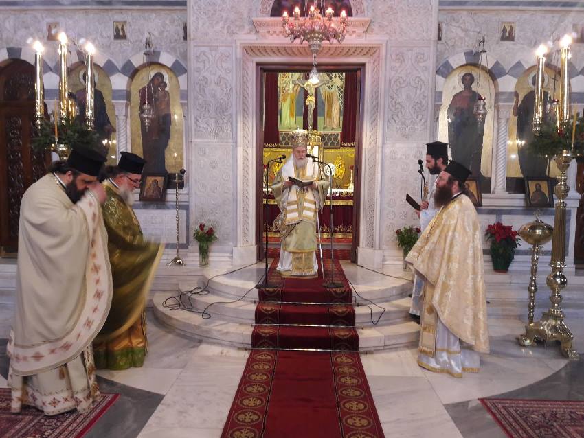 Μετά το πέρας της Θ. Λειτουργίας ο Ποιμενάρχης μίλησε για την μεγάλη εορτή των Θεοφανείων και την έννοια του Βαπτίσματος, τονίζοντας ότι ο Άγιος Ιωάννης ο Πρόδρομος και Βαπτιστής έδιδε το βάπτισμα της μετανοίας και της άφεσης των αμαρτιών προετοιμάζοντας τους ανθρώπους για τον ερχομό του Μεσσία. Η Εκκλησία με το Βάπτισμα, στο όνομα της Αγίας Τριάδας, εισάγει τον νεοφώτιστο στην συμμετοχή του θανάτου και της Αναστάσεως του Ιησού Χριστού. Ο νεοφώτιστος με την βάπτιση αποθέτει τον παλαιόν άνθρωπο και εξέρχεται από το Μυστήριο αναγεννημένος «ἐν Πνεύματι Ἁγίῳ» ενδεδυμένος τον νέο, τον ανακαινισμένο άνθρωπο, τον άνθρωπο που είναι έτοιμος να αντιμετωπίσει κάθε πειρασμό. Περαίνοντας τον λόγο του επεσήμανε ότι εμείς οι Ορθόδοξοι Χριστιανοί με την συμμετοχή μας στο Ι. Μυστήριο της εξομολογήσεως μπορούμε να ξεπλυθούμε από το βάρος των μετά το Βάπτισμα αμαρτιών μας ανανεώνοντας την χάρη του Αγίου Βαπτίσματος και με την αγάπη, την ελεημοσύνη και γενικότερα την τήρηση των Ευαγγελικών αρετών έχουμε την ελπίδα της Ζωής της Αιωνίου και της απολαύσεως των Αγαθών «ἃ ἡτοίμασεν ὁ Θεὸς … (Α΄ Κορ. β, 9) … τοῖς ἠγαπηκόσι τὴν ἐπιφάνειαν αὐτοῦ. (Β΄Τιμ. δ, 8)».