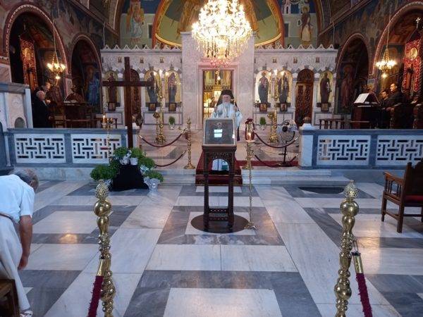 Στη συνέχεια ο Σεβασμιώτατος επεσήμανε ότι και οι Κυριακές, μία πριν την εορτή της Υψώσεως του Τιμίου Σταυρού και μία μετά, είναι αφιερωμένες στον Σταυρό του Χριστού μας και η Εκκλησία μας πολύ διδακτικά τοποθετεί Αποστολικά και Ευαγγελικά αναγνώσματα που αναφέρονται σ᾿ Αυτόν. Ολοκληρώνοντας ο Σεβασμιώτατος προσέθεσε ότι δια του Σταυρού έρχεται η χάρις του Θεού και επειδή αυτό είναι εξαιρετικά δύσκολο να πραγματοποιηθεί βιωματικά ο Απ. Παύλος μας νουθετεί: «Χριστῷ συν εσταύρωμαι· ζῶ δὲ οὐκ έτι ἐγώ, ζῇ δὲ ἐν ἐμοὶ Χριστός» (Γαλ. β’,20), και ευχήθηκε στους παρισταμένους Πιστούς να αξιωθούντην πορεία προς τον Σταυρό και την Ανάσταση!