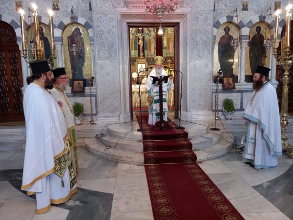 Κατά τη διάρκεια της Θείας Λειτουργίας, ο σεπτός Ποιμενάρχης αναφέρθηκε στο ιστορικό πλαίσιο της κλοπής του Τιμίου Σταυρού από τους Πέρσες, την νικηφόρο εκστρατεία που πραγματοποίησε ο Αυτοκράτορας Ηράκλειος και την επιστροφή του Τιμίου Σταυρού από τον ίδιο τον Αυτοκράτορα στην πόλη των Ιεροσολύμων, καθώς και την Ύψωση του Σταυρού από τον Πατριάρχη Ιεροσολύμων Άγιο Ζαχαρία όπου όλοι έψαλλαν το «Σῶσον Κύριε τὸν λαόν σου καὶ εὐλόγησον τὴν κληρονομίαν σου, νίκας τοῖς Βασιλεῦσι κατὰ βαρβάρων δωρούμε-νος καὶ τὸ σὸν φυλάττων διὰ τοῦ Σταυροῦ σου πολίτευμα», επισημαίνοντας ότι σε αυτό το ιστορικό γεγονός άπαντες έθεσαν πάνω από την ευημερία τους τον Σταυρό του Κυρίου, κάτι που στις μέρες μας γίνεται πλέον σπάνια.