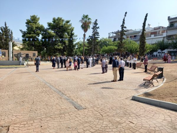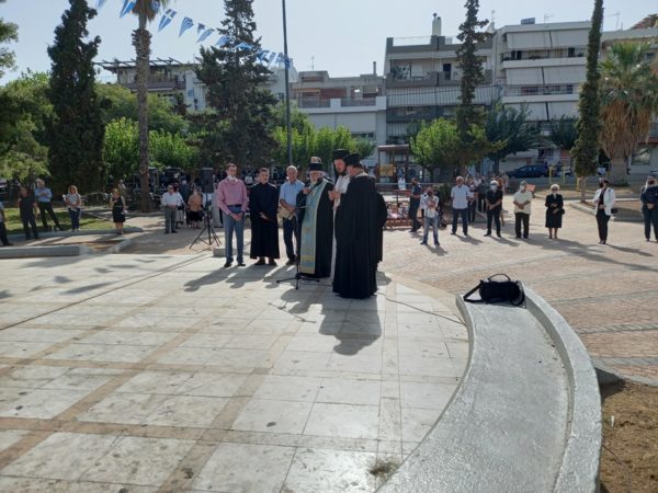 Μετά το πέρας της Θ. Λειτουργίας ο Σεβασμιώτατος μετέβη στον Ι. Ναό Κοιμήσεως της Θεοτόκου Ιωνίας Κορίνθου, όπου με αφορμή τις Εκδηλώσεις υπό τον τίτλο «Μικρασιάτικα 2021», παρευρέθηκε μετά του Υφυπουργού Περιβάλλοντος και Ενέργειας κ. Νικολάου Ταγαρά, του Δημάρχου Κορινθίων κ. Βασιλείου Νανόπουλου, της Θεματικής Αντιπεριφερειάρχου κ. Αθηνάς Κόρκα, της Συμβούλου του Πρωθυπουργού για θέματα Χωροταξίας κ. Μαρίας- Ελένης Σούκουλη – Βιλιάλη και εκπροσώπων του Στρατού και της Αστυνομίας, στο επιμνημόσυνο Τρισάγιο για τους απανταχού της γης τελειωθέντας Μικρασιάτες καθώς και στην κατάθεση στεφάνων στην πλατεία και στο Μνημείο Μικρασιατικών Προσφύγων.