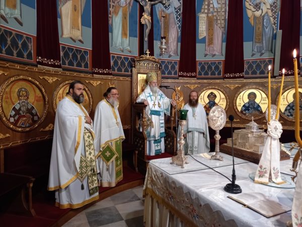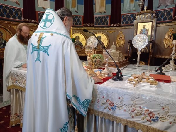Κατά τη διάρκεια της Θείας Λειτουργίας, ο σεπτός Ποιμενάρχης αναφέρθηκε στο ιστορικό πλαίσιο της κλοπής του Τιμίου Σταυρού από τους Πέρσες, την νικηφόρο εκστρατεία που πραγματοποίησε ο Αυτοκράτορας Ηράκλειος και την επιστροφή του Τιμίου Σταυρού από τον ίδιο τον Αυτοκράτορα στην πόλη των Ιεροσολύμων, καθώς και την Ύψωση του Σταυρού από τον Πατριάρχη Ιεροσολύμων Άγιο Ζαχαρία όπου όλοι έψαλλαν το «Σῶσον Κύριε τὸν λαόν σου καὶ εὐλόγησον τὴν κληρονομίαν σου, νίκας τοῖς Βασιλεῦσι κατὰ βαρβάρων δωρούμε-νος καὶ τὸ σὸν φυλάττων διὰ τοῦ Σταυροῦ σου πολίτευμα», επισημαίνοντας ότι σε αυτό το ιστορικό γεγονός άπαντες έθεσαν πάνω από την ευημερία τους τον Σταυρό του Κυρίου, κάτι που στις μέρες μας γίνεται πλέον σπάνια.