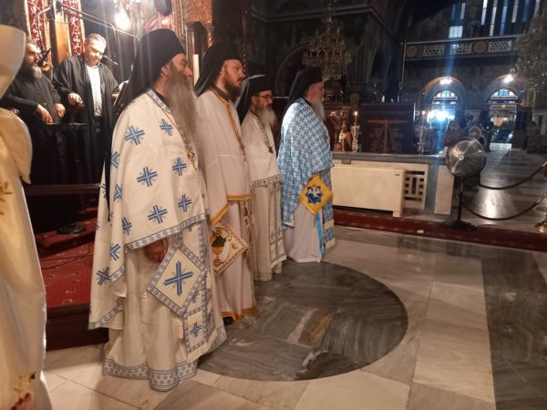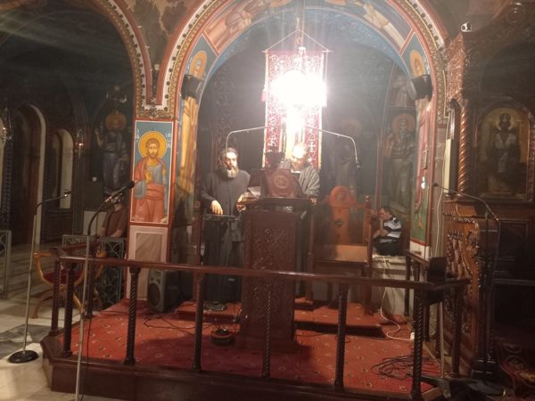 Στην Ι. Αγρυπνία τα Ιεροψαλτικά αναλόγια κόσμησαν ο Λαμπαδάριος του Ι. Ναού κ. Ιωάννης Λιούντρης και ο Διευθυντής της Σχολής Βυζαντινής Μουσικής και υπεύθυνος του Γραφείου Γάμων της Ι. Μητροπόλεως, Αιδεσ. Πρωτ/ρος π. Αθανάσιος Κοντογιάννης.