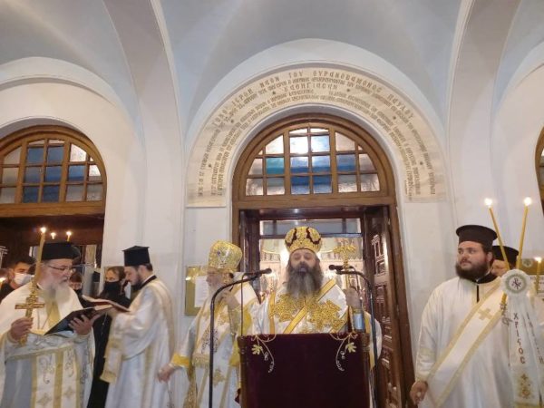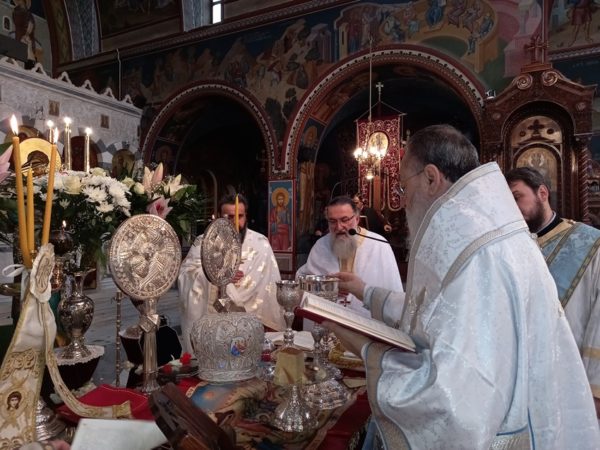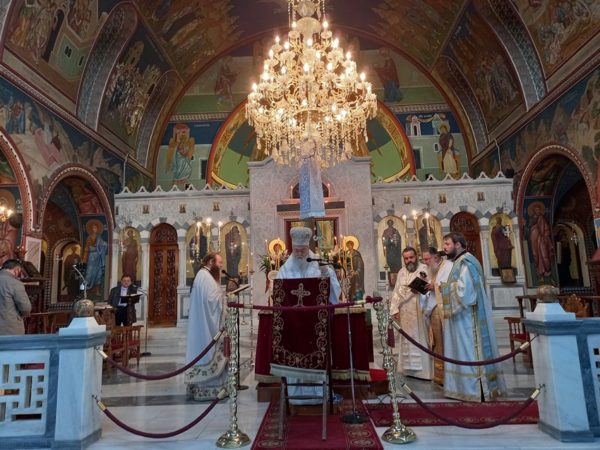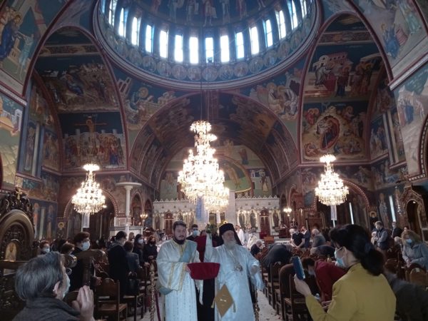 Στην Θ. Λειτουργία συμμετείχαν πιστοί, κυρίως νέοι άνθρωποι, οι οποίοι τηρώντας τα υγειονομικά μέτρα μετάλαβαν των Αχράντων Μυστηρίων. Ο Σεβασμιώτατος έκανε ειδική μνεία στην Θ. Ευχαριστία τονίζοντας ότι με την συμμετοχή μας στο Μέγα Μυστήριο της Θ. Λειτουργίας συμμετέχουμε στην ζωή του Χριστού και κοινωνούμε το Αναστημένο Σώμα Του. Αυτή η μυσταγωγία λυτρώνει τις ψυχές μας και μας απαλλάσσει από τα αβάσταχτα βάρη της καθημερινότητας. Αυτό είναι το Πάσχα των Ορθοδόξων, η μετάβαση από το υλικό στο πνευματικό, το πέρασμα από τον θάνατο στην Ζωή!