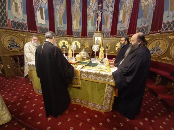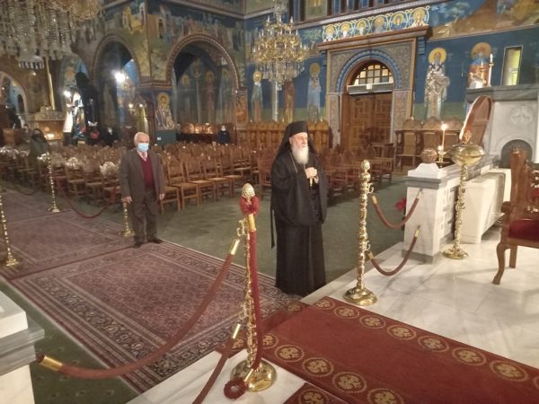 Το βράδυ της 31ης Δεκεμβρίου 2021 ο σεπτός Μητροπολίτης και ο άγιος Πρωτοσύγκελλος πλαισιούμενοι από τους Ιερείς του Ι. Ναού, τέλεσαν αρχικώς τον Μέγα Πανηγυρικό Εσπερινό και στην συνέχεια τον Όρθρο και την Θ. Λειτουργία του Μεγάλου Βασιλείου.