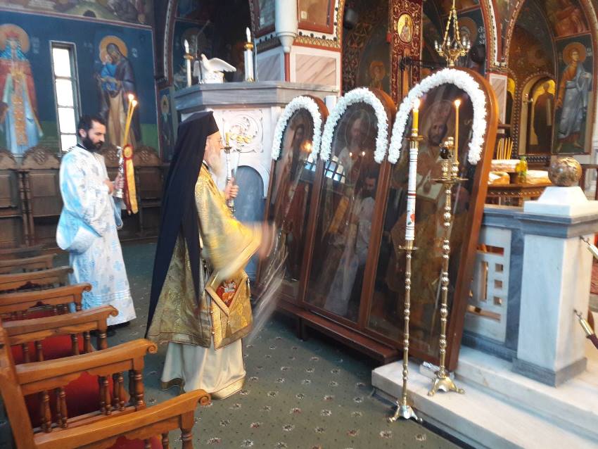 Ο Σεβασμιώτατος, λίγο πριν την απόλυση, στην σύντομη αναφορά του, ομίλησε για τους τιμώμενους Αγίους και την ανεπανάληπτη προσφορά τους στην Εκκλησία, τις Επιστήμες και την Παιδεία. Τόνισε δε, ότι τα συγγράμματα των Αγίων Πατέρων είναι διαχρονικά διαμάντια, των οποίων η μελέτη εκτός από τα προφανή μορφωτικά οφέλη, προσφέρει και ηρεμία και γαλήνη στις ψυχές των Χριστιανών. Και φυσικά οι εσχάτως «κυκλοφορούσες» απόψεις περί τάχα ξεπερασμένου της διδασκαλίας των Τριών Ιεραρχών μόνο ως αστειότητα μπορεί να εκληφθούν από τους νοήμονες ανθρώπους. Ολοκληρώνοντας την ομιλία του ευχήθηκε στους μαθητές, στους γονείς τους και στους εκπαιδευτικούς να έχουν πάντοτε την ευλογία του Θεού, να είναι υγιείς και να έχουν πρόοδο στην ζωή τους δια των πρεσβειών των Αγίων Τριών Ιεραρχών, μιμούμενοι το παράδειγμά Τους!