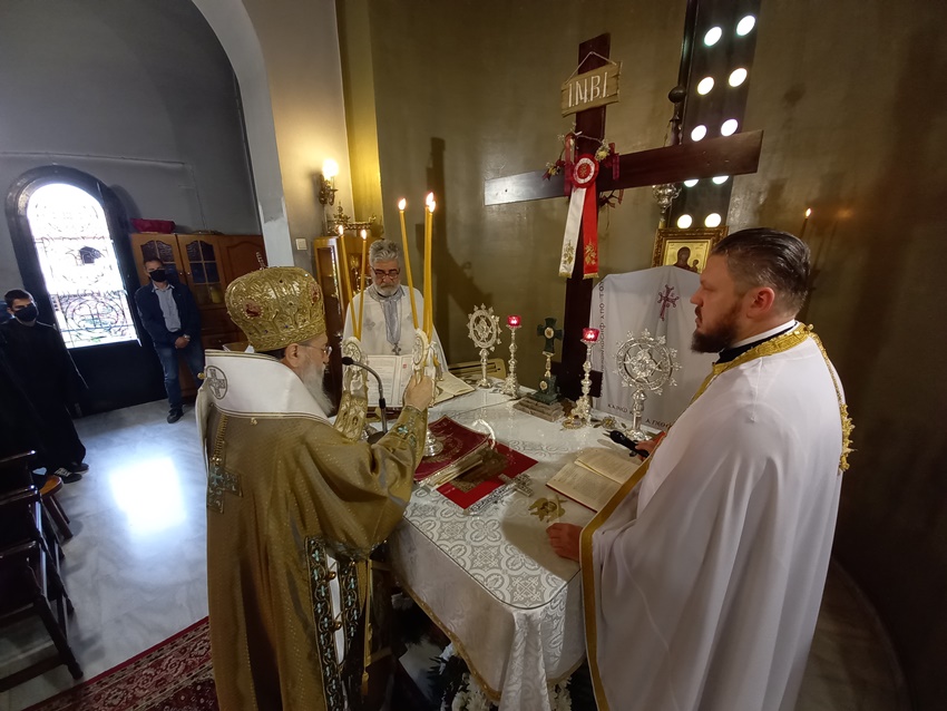 Στον Ιερό Ναό Μεταμορφώσεως του Σωτήρος Κορίνθου λειτούργησε ο Σεβασμιώτατος Μητροπολίτης Κορίνθου κ. Διονύσιος το Σάββατο, 15 Μαΐου 2021, πλαισιωμένος από τον Πανοσ. Αρχιμ. π. Αρκάδιο Ραζνύ, προϊστάμενο του Ι. Ναού, τον Αιδεσ. Πρωτ/ρο π. Αναστάσιο Ριζόγιαννη και τον Αρχιδιάκονο της Ι. Μητροπόλεως π. Δαμασκηνό Γεννηματά, ενώ παρέστη συμπροσευχόμενος ο Εφημέριος του Ι. Ναού Πανοσ. Αρχιμ. π. Ιωακείμ Βασιλάκος.