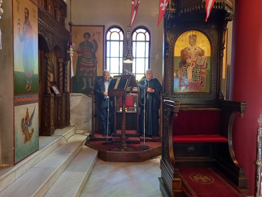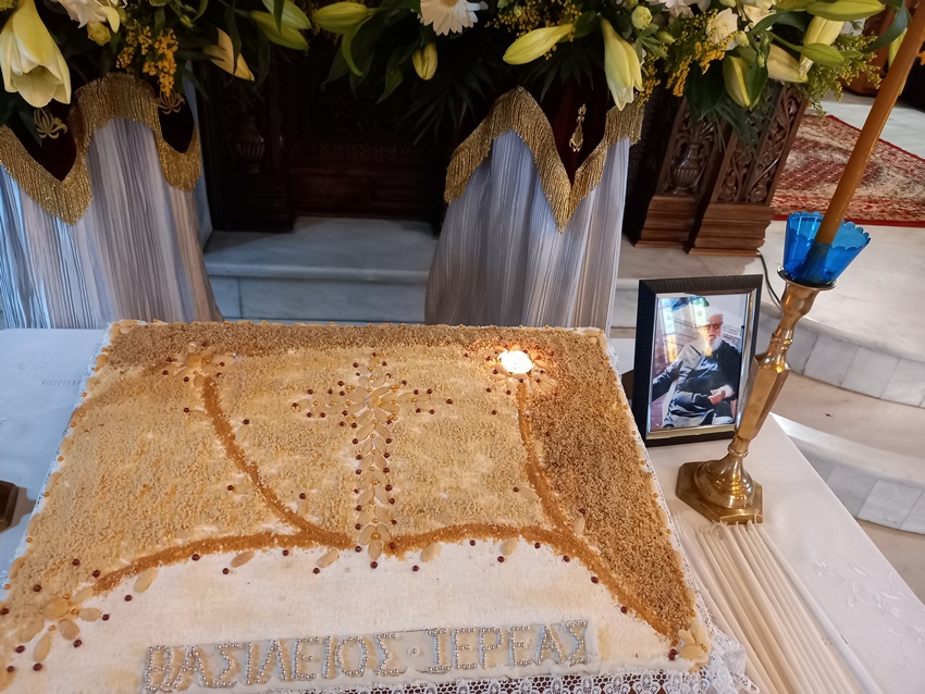 Μετά από αυτούς τους παρηγορητικούς λόγους, τέλεσε το τεσσαρακονθήμερο Μνημόσυνο του μακαριστού Πρωτ/ρου π. Βασιλείου Χασούρα, συνταξιούχου Εφημερίου του Ι. Ναού Αγίου Γεωργίου Ζωγράφου Αττικής, πενθερού του Αιδεσ. π. Αναστασίου Ριζόγιαννη, Κληρικού της Ι. Μητροπόλεως, συλλυπούμενος την Πρεσβυτέρα, τα τέκνα και τα εγγόνια του αοιδίμου συντοπίτη πατρός Βασιλείου.