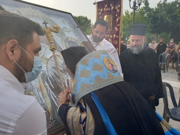 Ο Σεβασμιώτατος κατά τη διάρκεια της υποδοχής προσευχήθηκε υπέρ της ταχείας αναρρώσεως και της πλήρους αποκαταστάσεως της υγείας του Καθηγουμένου της Ιεράς Μεγίστης Μονής Βατοπαιδίου Γέροντος Εφραίμ Βατοπαιδινού ο οποίος είναι και δωρητής της Ιεράς Εικόνος.