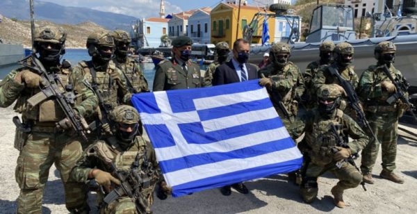 Αργότερα, ο κ. Παναγιωτόπουλος επιβιβάστηκε στην Πυραυλάκατο (ΤΠΚ) «ΡΟΥΣΣΕΝ», που περιπολεί στην περιοχή και συνομίλησε με τα μέλη του πληρώματος. Στη συνέχεια επισκέφθηκε το Στρατόπεδο Δυνάμεως Αμύνης Νήσου (ΔΑΝ) Μεγίστης, όπου ενημερώθηκε σχετικώς με την αποστολή και το έργο της. Εκεί τους υποδέχθηκαν οι Φρουροί της Νήσου με εντυπωσιακή παρουσία σε εξοπλισμό και ιματισμό!