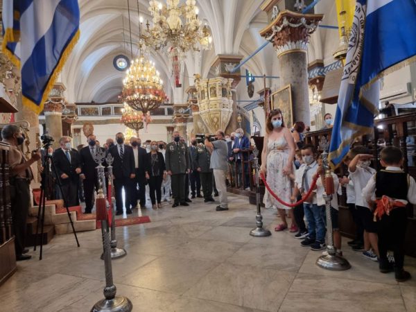 Μάλιστα, στο νησί παραβρέθηκαν ο Υπουργός Εθνικής Αμύνης, Νίκος Παναγιωτόπουλος και ο Αρχηγός ΓΕΕΘΑ, Στρατηγός Κωνσταντίνος Φλώρος. Ο Υπουργός, συνοδευόμενος από τον Αρχηγό ΓΕΕΘΑ, παρακολούθησε το πρωί την Ακολουθία του Αγιασμού στα σχολεία της νήσου και στη συνέχεια την Πανηγυρική Δοξολογία στον Ιερό Ναό Αγίου Κωνσταντίνου και Ελένης. Ακολούθως μετέβη στο Ηρώο και κατέθεσε στέφανο, ενώ συναντήθηκε με τον Δήμαρχο Μεγίστης κ. Γεώργιο Σαμψάκο, εκπροσώπους τοπικών φορέων και κατοίκους του νησιού.