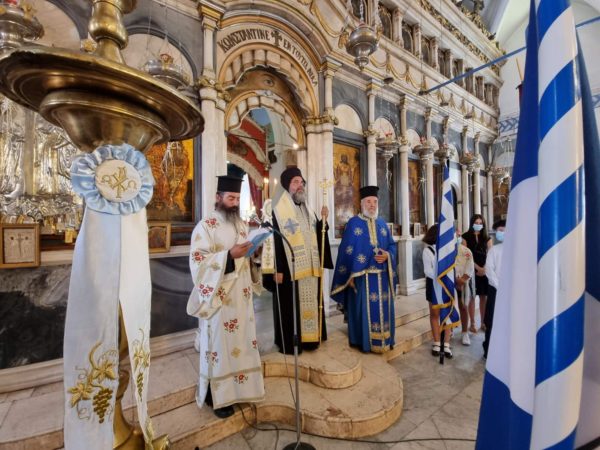 Το πρωί της Δευτέρας, πριν την πανηγυρική δοξολογία, ο Σεβασμιώτατος τέλεσε τον Αγιασμό επί τη ενάρξει του νέου Σχολικού έτους στο Δημοτικό-Γυμνάσιο-Λύκειο Καστελλορίζου (Σαντράπειος Ἀστική Σχολή), ευχηθείς τα δέοντα τόσο στους μαθητές όσο και στους εκπαιδευτικούς.