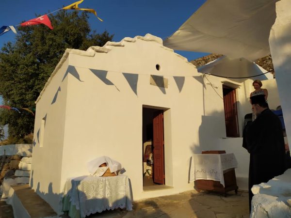 Πανηγυρικός Εσπερινός της εορτάζουσας Αγίας Παρασκευής στο Ιερό Εξωκκλήσι της Αγίας υπό του Σεβασμιωτάτου Μητροπολίτου Σύμης, Τήλου, Χάλκης και Καστελλορίζου κ. Χρυσοστόμου, κατά την εσπέρα της 25ης Ιουλίου.