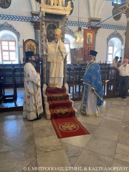 Το διήμερον Σάββατον 21η και Κυριακή 22α Αυγούστου 2021,όπως είχε ανακοινωθεί στο πρόγραμμα της Ιεράς Μητροπόλεως, ο Σεβασμιώτατος Μητροπολίτης Σύμης κ. Χρυσόστομος επισκέφτηκε το ακριτικό Καστελλόριζο στο πλαίσιο μιας ακόμη ποιμαντικής του επισκέψεως κατά την τρέχουσα περίοδο, συνοδευόμενος από τον Διάκονο π. Γεώργιο Κακακιό, καθώς και τον Ιεροψάλτη κ. Παναγιώτη Μανουσάκη.