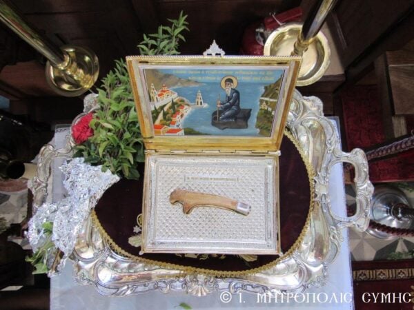 Τα ιερά λείψανα τοποθετήθηκαν μέσα σε αργυρή λάρνακα μαζί με την τίμια κάρα του σε περίβλεπτη θέση του ναού και εκπέμπουν άρρητη ευωδία.