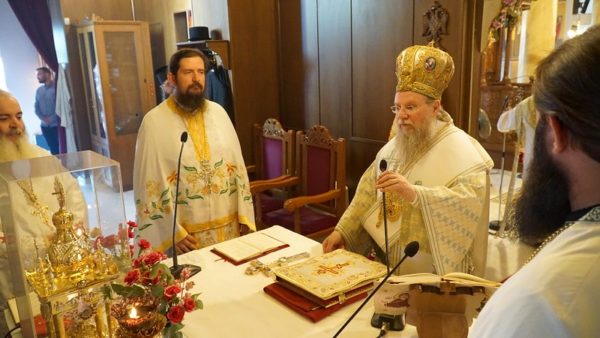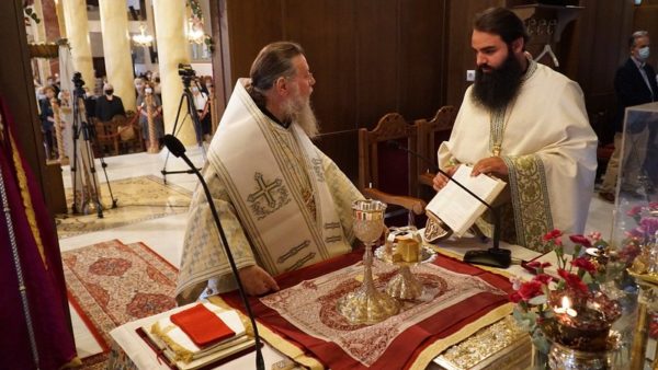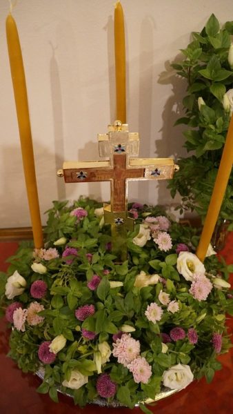 Πριν το τέλος της Θείας Λειτουργίας τελέσθηκε η ακολουθία της Υψώσεως του Τιμίου Σταυρού.